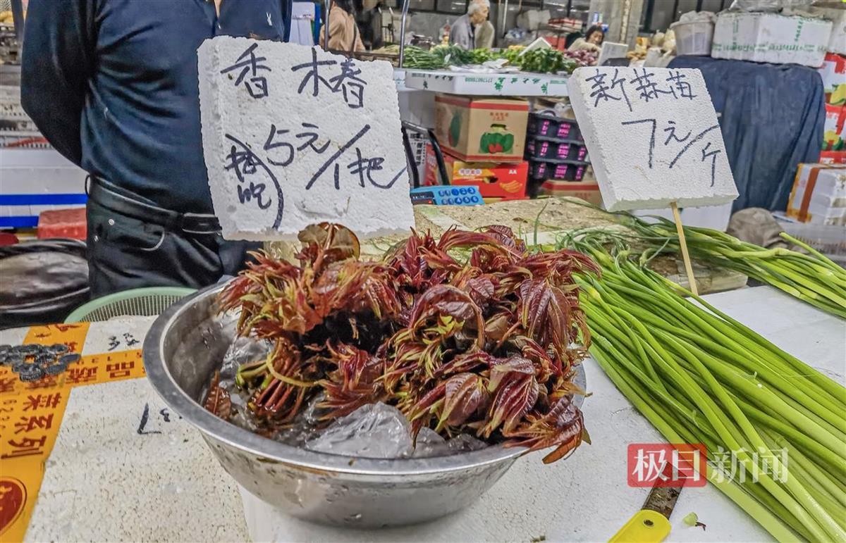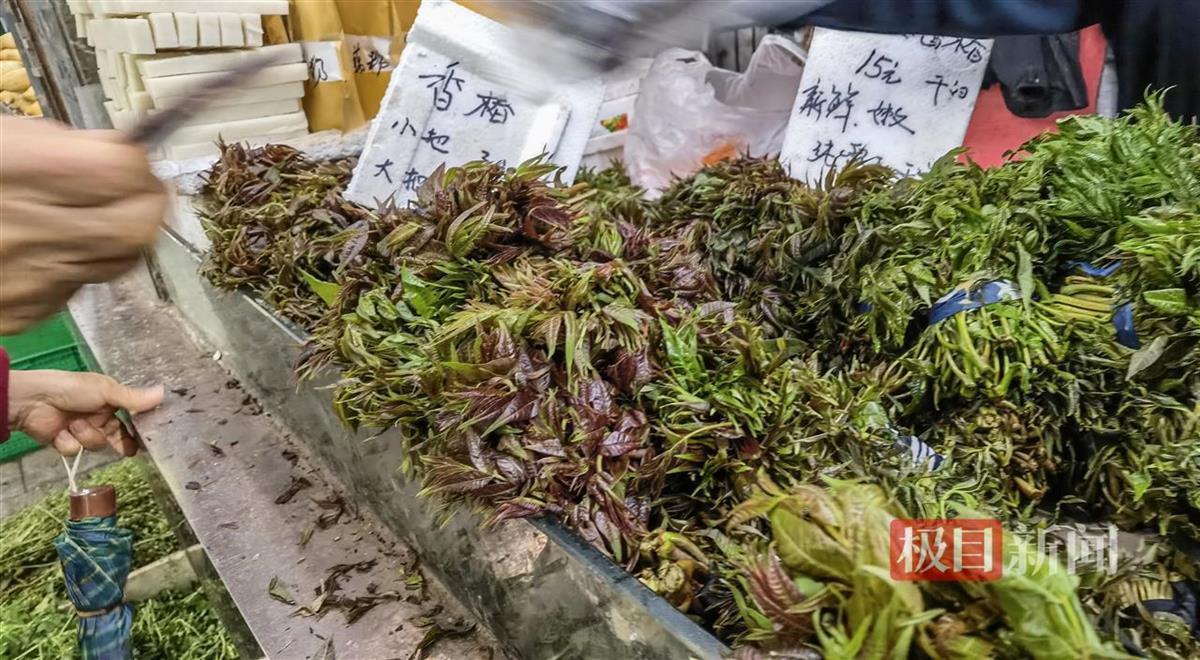 据悉,今年春天气候适宜,有利万物生长,各类时令春菜在武汉密集上市,以香椿为代表的各类春菜价格回落,为市民带来春天的丰富的“鲜味”体验。与2月初香椿刚上市的400元左右一斤的价格相比,目前的价格让市民感觉可以“岔着”吃香椿了。