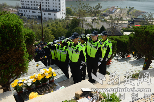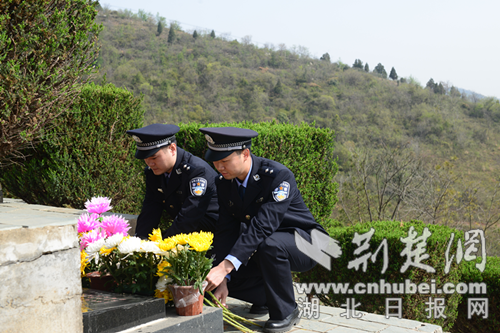 民辅警向京山公安烈士黄士林、刘贵斌敬献鲜花