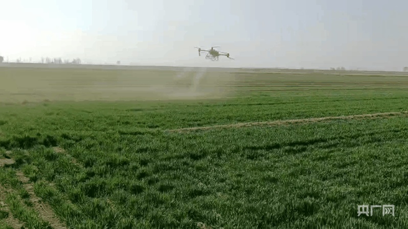 无人机正在田间作业(央广网记者 褚夫晴 摄)