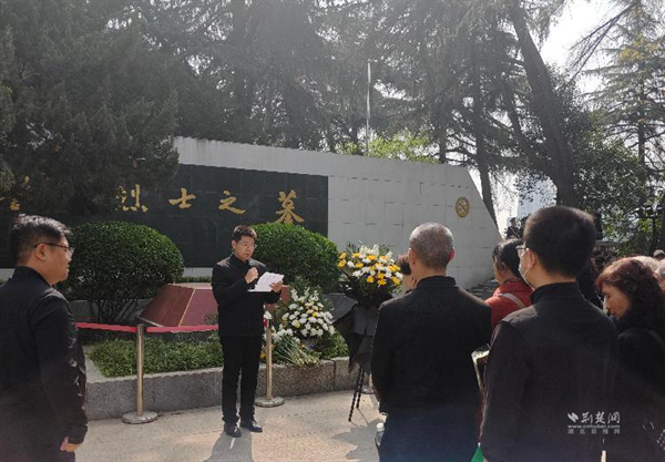 解放桥社区居民向烈士纪念碑敬献花篮并默哀。 通讯员供图