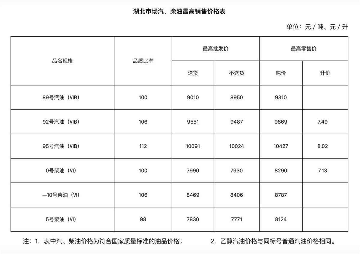 4月2日,湖北省发改委发布公告,湖北成品油价格按机制上调,92号汽油、95号汽油、0号柴油每升分别上涨0.18元、0.20元、0.19元。