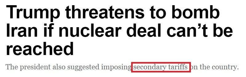 其实自特朗普今年年初重返白宫伊始,“极限施压”就已重新提上日程。只是他最新威胁中提到的“二级关税”听来似乎略显陌生。