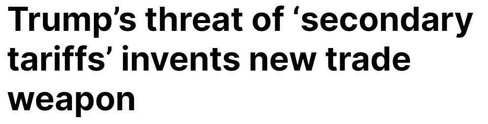 按照彭博社的解释,这似乎是美国正在发明的一种将关税与“二级制裁”组合在一起的新型贸易武器。