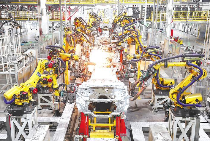 3月31日,长城汽车荆门分公司车间自动化生产线全速运转,机器人手臂焊接车身焊花飞溅。据了解,长城汽车荆门分公司1—3月份,生产整车34927辆,同比增长实现首季“开门红”。今年,该公司将向年产18万辆整车的目标冲刺,力争实现年产值350亿元。