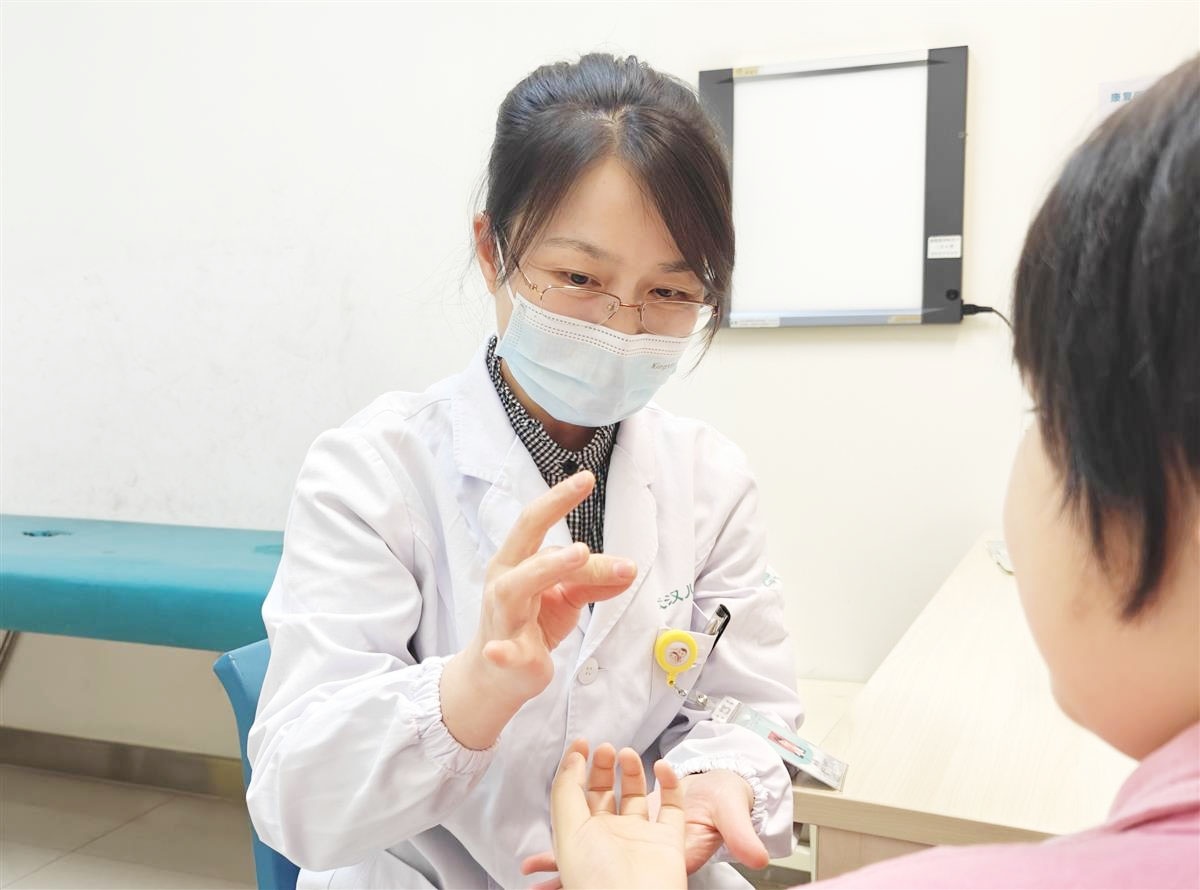 康复医学科主任医师朱红敏接诊患儿 通讯员官笑涵摄