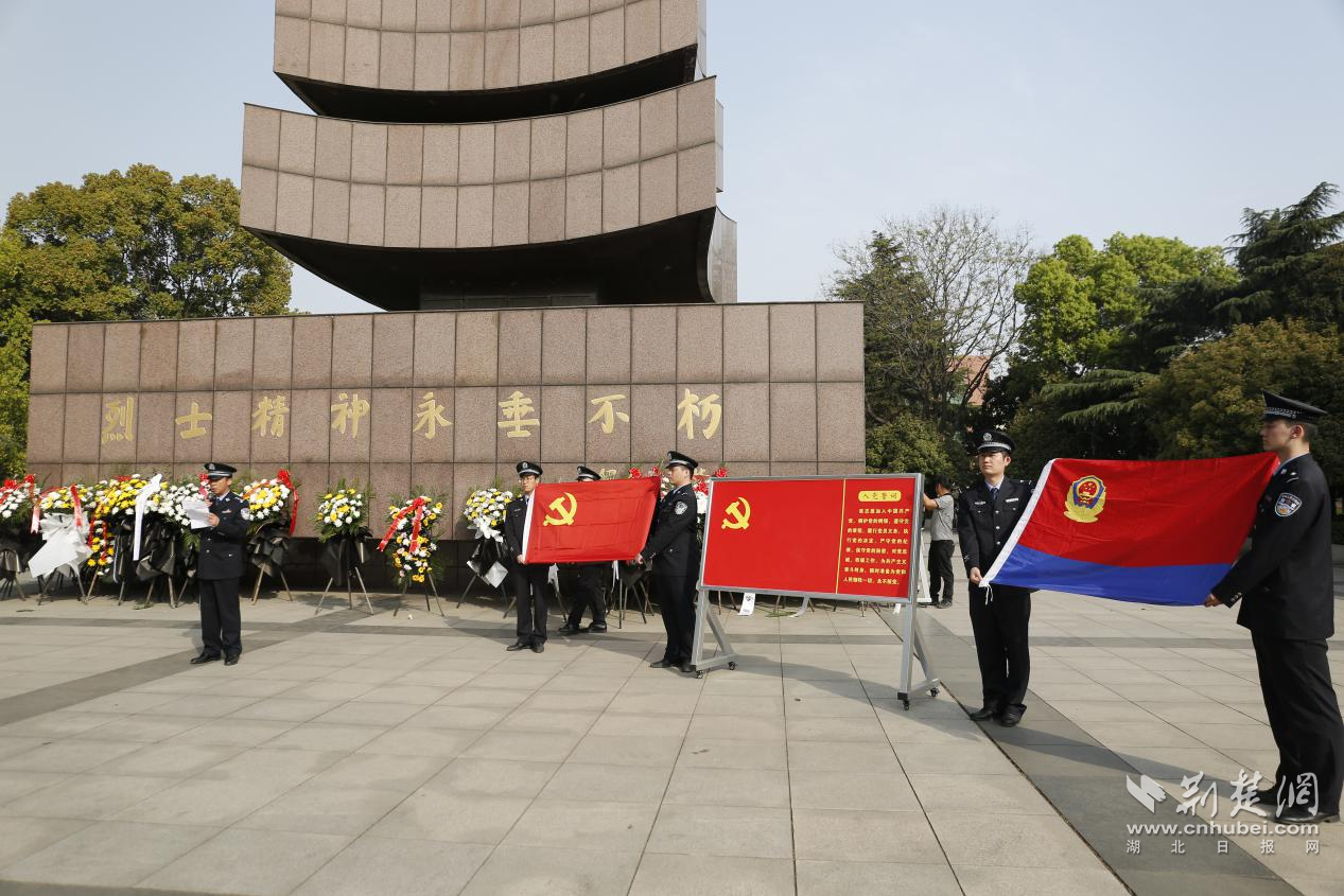 “我志愿加入中国共产党,拥护党的纲领......”面对党旗和警旗,全体党员民警重温入党誓词,铮铮誓言在陵园回响,彰显着不忘初心、牢记使命的坚定信念。