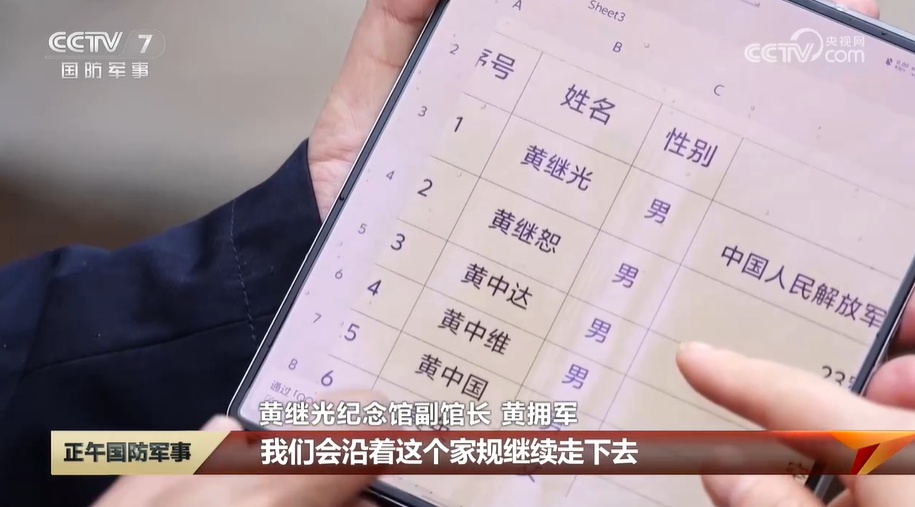 黄继光纪念馆副馆长 黄拥军:参军的名单从第1名到18名,明年还有19名。第20名是我姑娘,我们会沿着这个家规继续走下去。