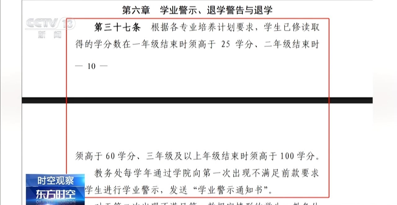 中国教育发展战略学会学术委员 陈志文:比如说从小被父母监管着,被老师监管着,然后到大学“放羊”。还有就是不想学,那么旷课、挂科现象就比较普遍出现。如果他不是一个主观态度问题,可能学了自己不擅长的,很多孩子在高考志愿填报的时候是盲从,甚至被误导这个专业就业好,然后就报了这个专业,但实际他根本不适合。我们不要等到学生最后毕业的时候,因为太多挂科导致拿不到毕业证,我们中间就要不断地进行多层次提醒。比如说,8门挂科就没有毕业证,我们提前到有4门挂科的时候,就开始提醒。同步往往会通知到家长,形成一个合力,来敦促孩子去学习。
