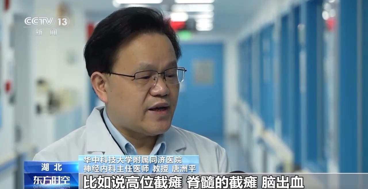 华中科技大学附属同济医院神经内科主任医师、教授 唐洲平:比如说一个手肌无力的病人,在运动想象过程中,我们通过非侵入式的设备收集脑电波的信号,进行解码,解码之后再指导手肌力功能康复。