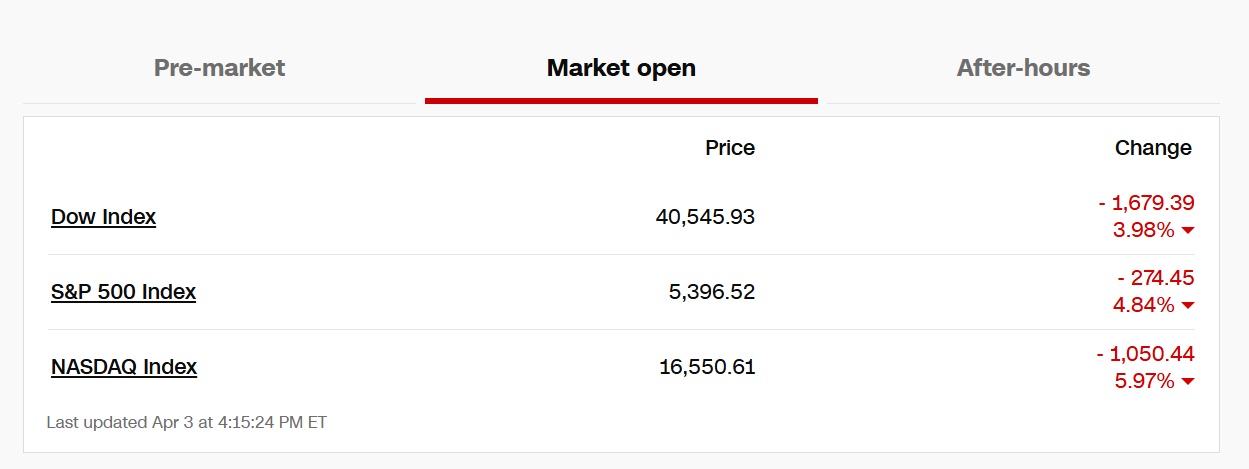 自残式关税血洗美股 三大股指创近5年最大单日跌幅