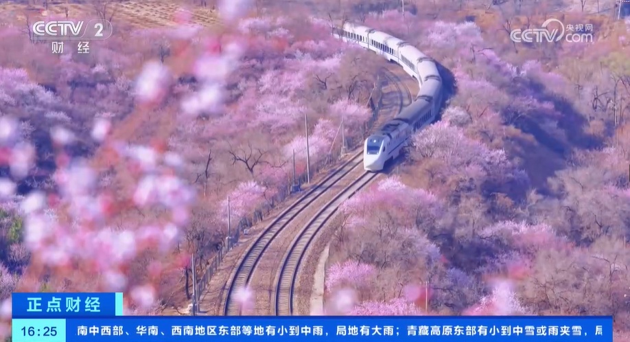 此外,北京铁路“开往春天的列车”涂装焕新,穿行在京郊S2线上的“长城号”动车组与沿线长城、群山、花海交相辉映,游客前往雁栖湖、红螺寺、青龙峡等景区更加便捷。新疆吐鲁番万亩杏花竞相绽放,铁路部门开行环疆 “杏韵之旅”银发专列。武汉铁路在麻城北至汉口、汉川等方向加开赏花专列。南昌铁路在厦门至武夷山、南昌至婺源、景德镇至上饶等城市间加开春游踏青列车,为旅客假期出行提供多元化服务。