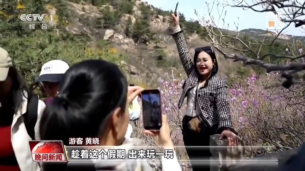 在山东青岛大珠山,这几天正是观赏野生杜鹃花的最佳时期,吸引了众多市民游客前来登山赏花。