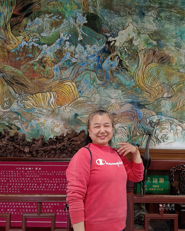 环卫工文阿姨在黄鹤楼里拍照留念。 通讯员供图