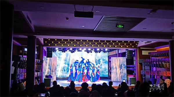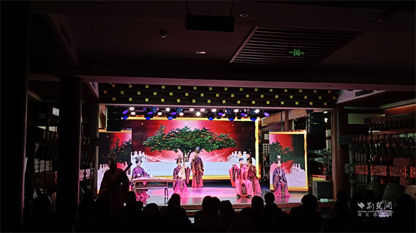 移步落梅轩,编钟乐舞表演将大家带入楚风汉韵的世界。八音合鸣、千古重响,古朴的编钟乐声配合着荆楚宫廷歌舞的风姿,让众人沉浸于艺术享受中,体味楚韵悠长。