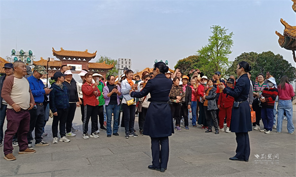 到达黄鹤楼主楼前,众人驻足观赏千年楼阁,并观看讲解员带来的快板表演。“喜鹊喳喳满枝头,欢迎您来黄鹤楼,天下名楼游一游……”清脆的竹板声中,讲解员将武汉的风景名胜、美食人文、发展成就巧妙串联。两江三镇的壮阔,八桥四环的恢弘,在幽默生动的唱词中跃然眼前。