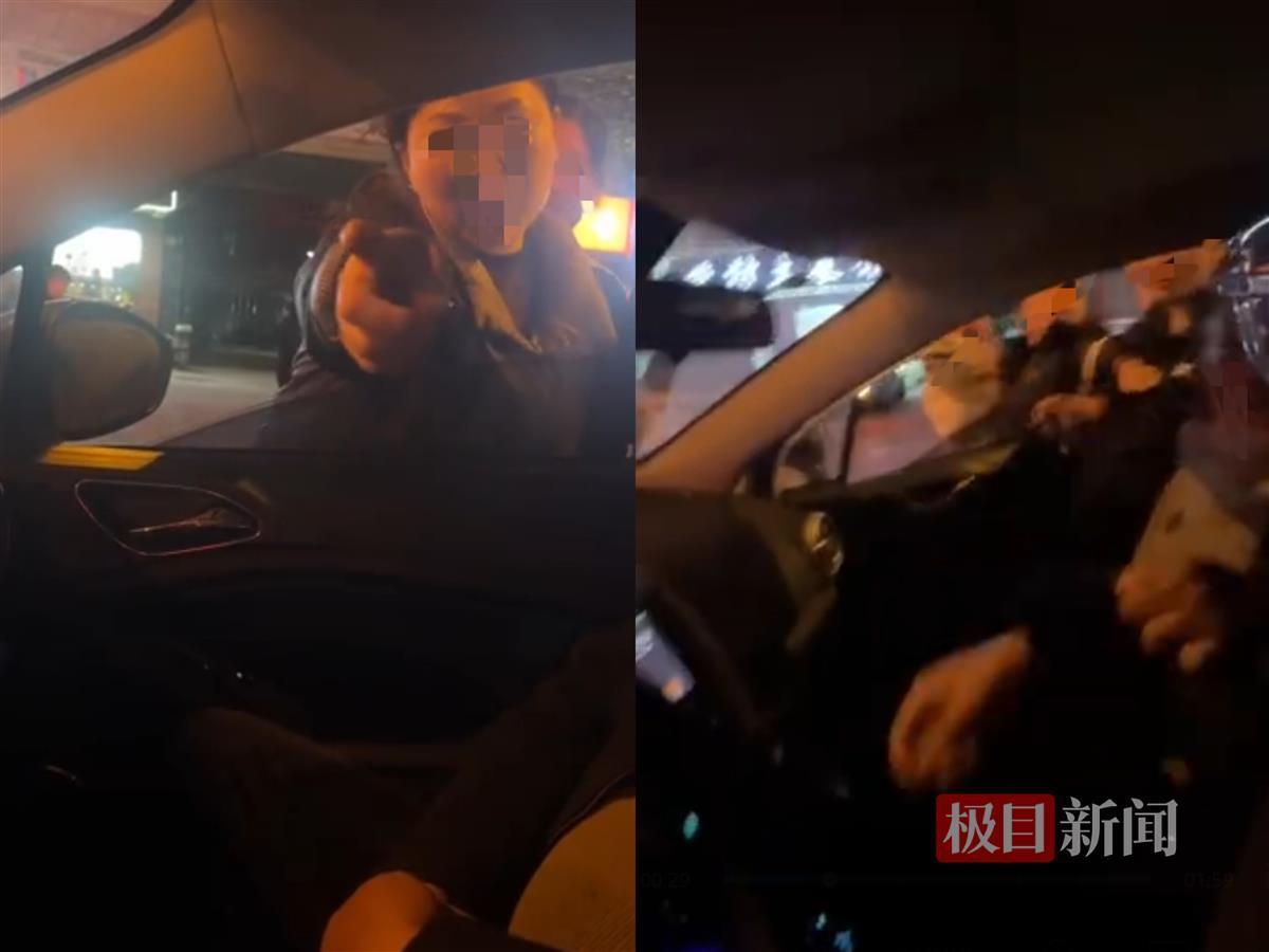 视频显示,一名男子坐在网约车副驾位置,言语含糊不清,车外一名女子扬言要投诉司机,并威胁“不会放过你”。男子朝着司机方向击打,画面一阵混乱后,司机大喊“不要抢我手机,你打了我一拳”。另有视频显示,双方在现场僵持了数分钟。