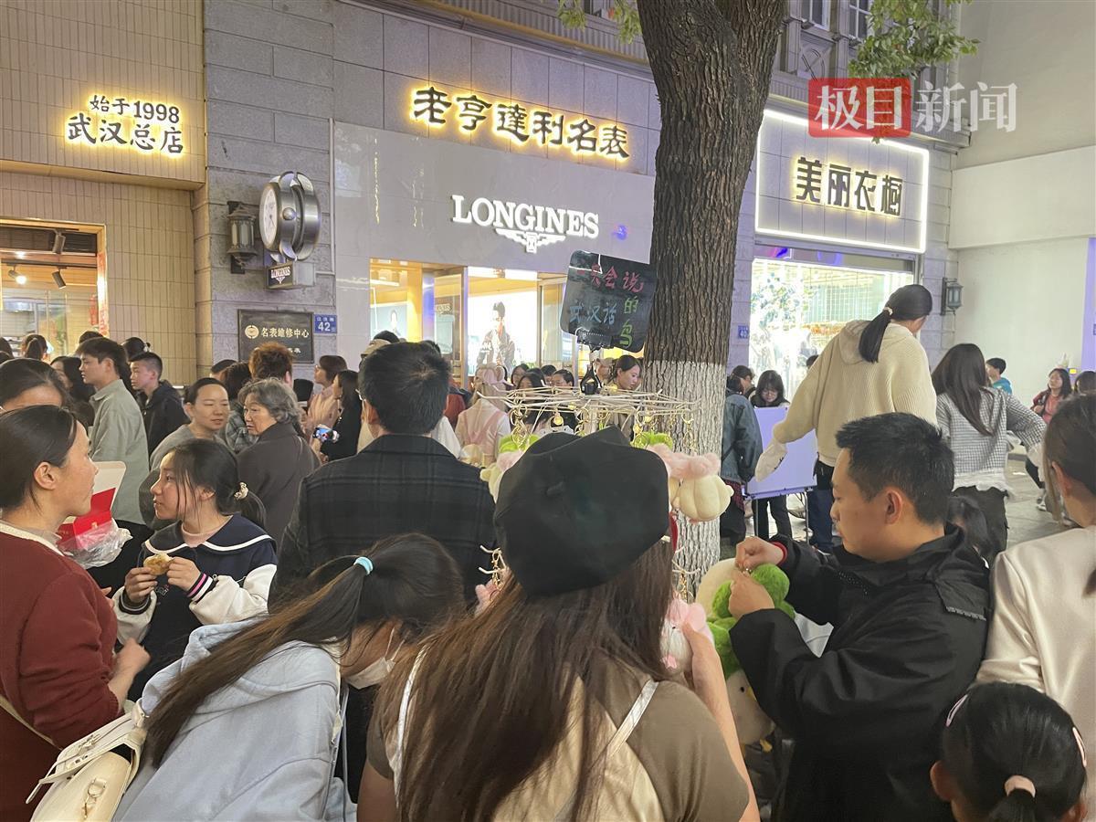当天,极目新闻记者在武汉江汉路步行街看到,这里已经是人山人海,市民游客有序在这里漫步、品尝特色美食。