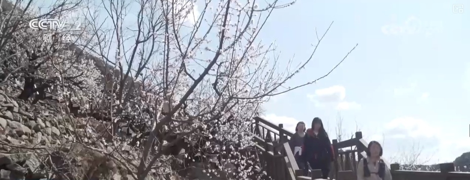 这段时间,在北京昌平区西峪橡树谷,山桃花、山杏花开放正盛。2025年,当地引入了巡山机器人,增强了游客赏花踏青的互动性。