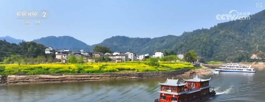 而在新安江山水画廊景区,一艘艘满载游客的游船在江上穿行。船在水上行,人在画中走,游客们尽情享受春日风光。