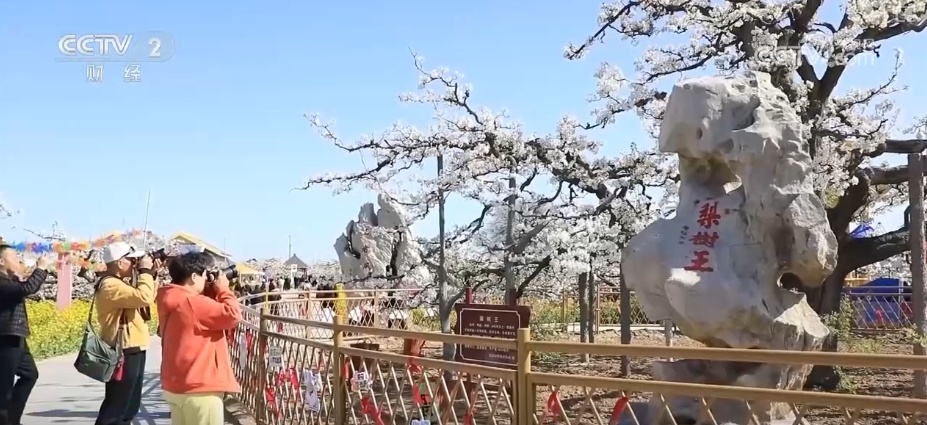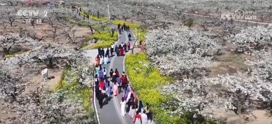 在山东聊城冠县,1.1万亩梨花开放,游人漫步于梨花树下赏花、拍照。这座梨园共种植有30多个品种,每年这个时节,不同品种的梨花竞相盛开,花期10天左右。为了让游客沉浸式体验,当地提升观花栈道、打造观雪台,让游客从空中欣赏梨园美景。