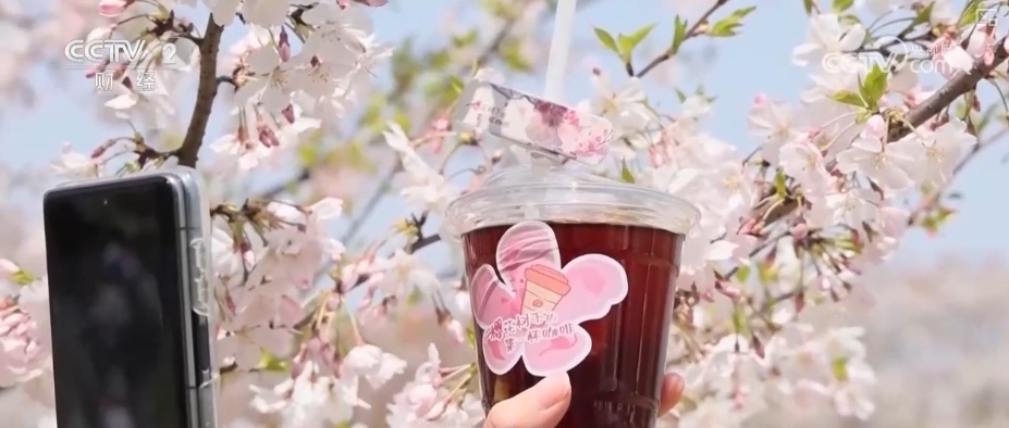上海某咖啡店店长卜方园介绍,平时一天可能一百杯,现在至少有个两三百杯。他们从早樱就开始在这边做快闪,当大家来欣赏樱花的时候,就可以拿着他们第一杯樱花咖啡。