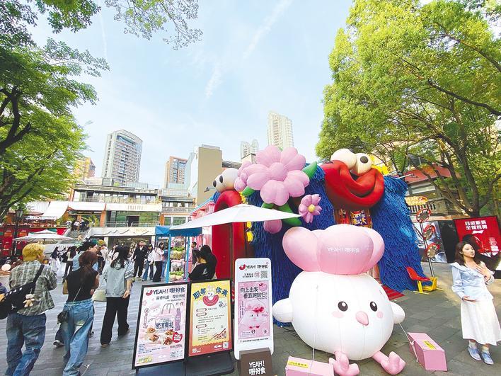 4月5日,武汉天地“嘢好食”快闪店“蒜鸟”热销。 (湖北日报全媒记者 刘天纵 摄)
