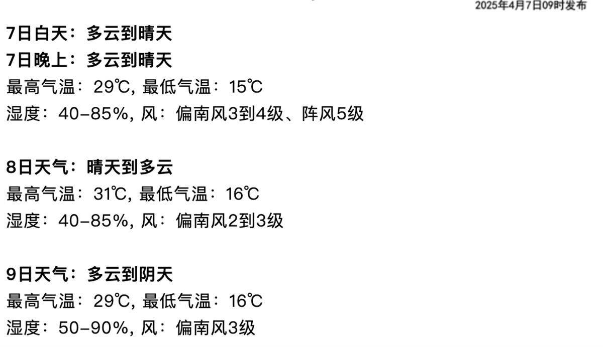 预计未来一周,武汉市以多云天气为主,森林火险气象等级高。受弱冷空气南下影响,11日武汉市有小到中雨,局地有强对流天气,11日至12日武汉市北风增强,气温下降;12日后气温回升。