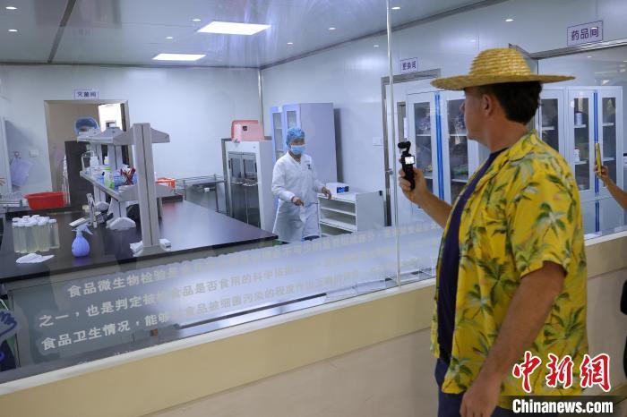 图为参加“侨”见海南自贸港主题活动的托米正在拍摄记录企业参访之行。 中新网记者 骆云飞 摄