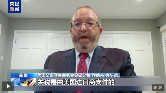 美国全国零售商联合会副总裁 乔纳森·戈尔德:他们非常担心,在过去几个月里,我想你已经看到消费者的信心下降了。我们最近做了民意调查,消费者对加征关税导致物价上涨表示担忧。在宣布加征关税的那一天,在华盛顿特区的大约75家小企业就表示,他们非常担心自己的生存能力,继续经营下去的能力,他们必须做些什么来化解这些成本,他们只能把这些成本转移给别人。