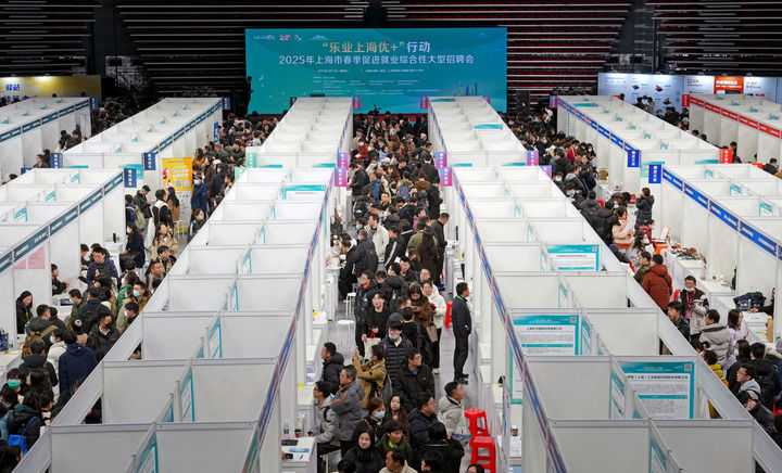 2025年2月14日,“乐业上海优+”行动——2025年上海市春季促进就业综合性大型招聘会在上海体育馆举行。新华社记者 刘颖 摄