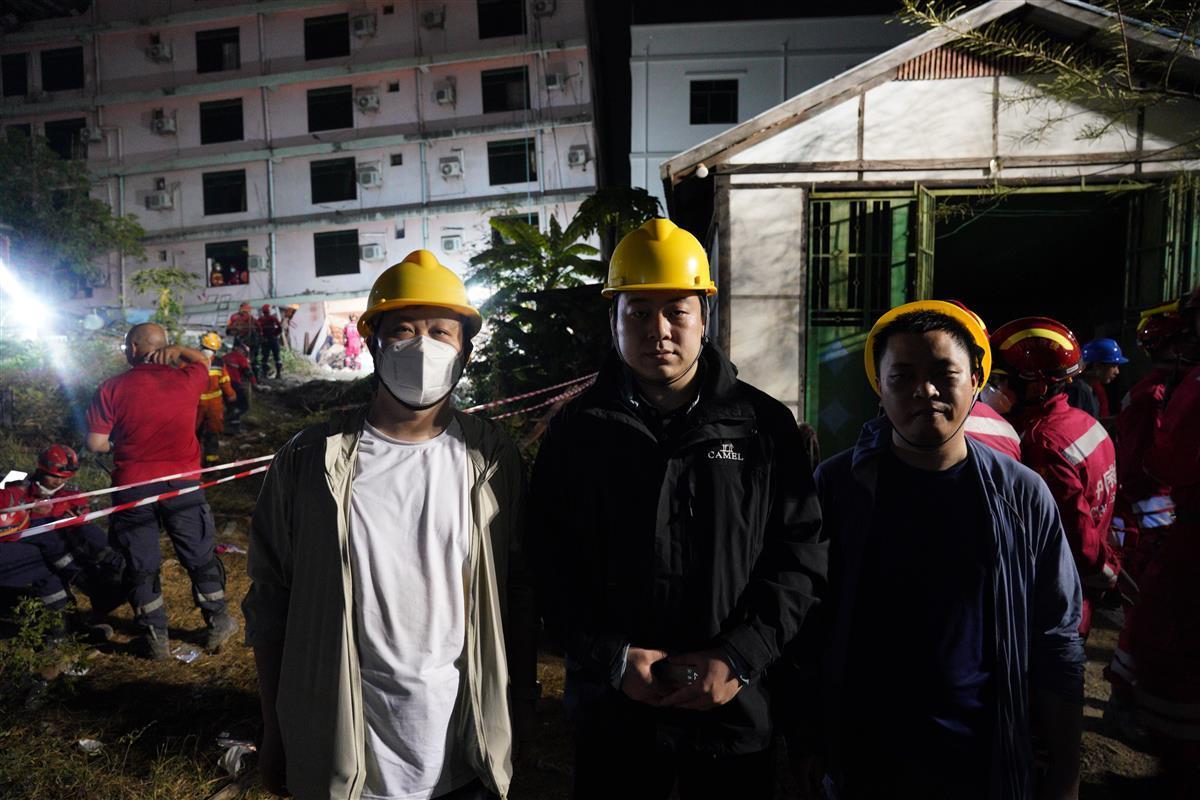 在曼德勒的这些天,让我感到亲切的是,辗转于一个个救援现场,我总能遇到两年前在土耳其认识的救援队员们。时隔两年,他们穿着同样的队服,手提着生命探测仪、救援工具,冒着余震的危险穿梭在废墟之中,一次又一次捕捉生命的信号。我甚至还遇到了一位多年未见的前同事。他曾以记者的身份去过不少救援现场,如今抵达缅甸曼德勒,他是以厦门市曙光救援队队员的身份,和队友们一起展开救援。