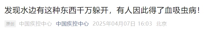 时刻注意岸边是否有相关警示标语!尽量避免在有钉螺孳生或存在不确定风险的江、湖、塘、沟渠等水体游泳、戏水、洗衣、捕鱼;