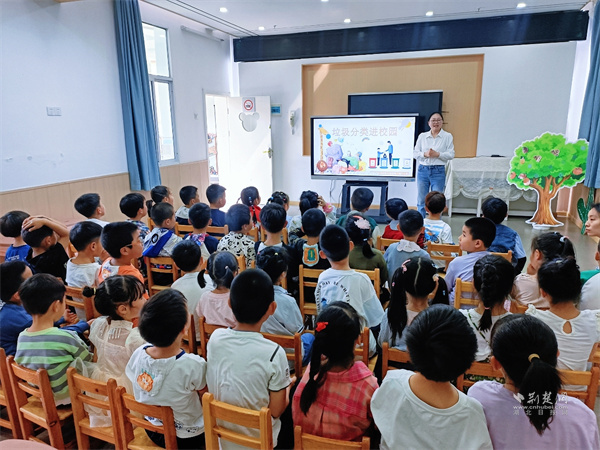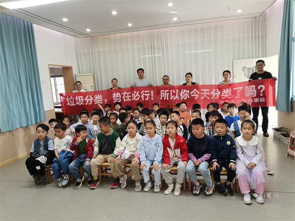 荆楚网(湖北日报网)讯 (通讯员 雷琴 蔡光耀 )为提升青少年对垃圾分类的了解与认识,养成垃圾分类的好习惯,弘扬生态文明理念,4月8日下午,武昌区黄鹤楼街道环卫所联合区垃圾分类专班、街道西厂口社区,走进辖区后长街幼儿园开展“垃圾分类进校园 携手‘童’行共成长”主题活动。