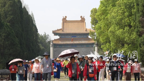 上午9时许,游客们抵达明显陵景区,大家跟随导游,轻抚斑驳的红墙,顺着脚下蜿蜒的龙鳞神道,走进这座融合天人哲思的建筑史诗,亲身感受明文化的独特魅力。