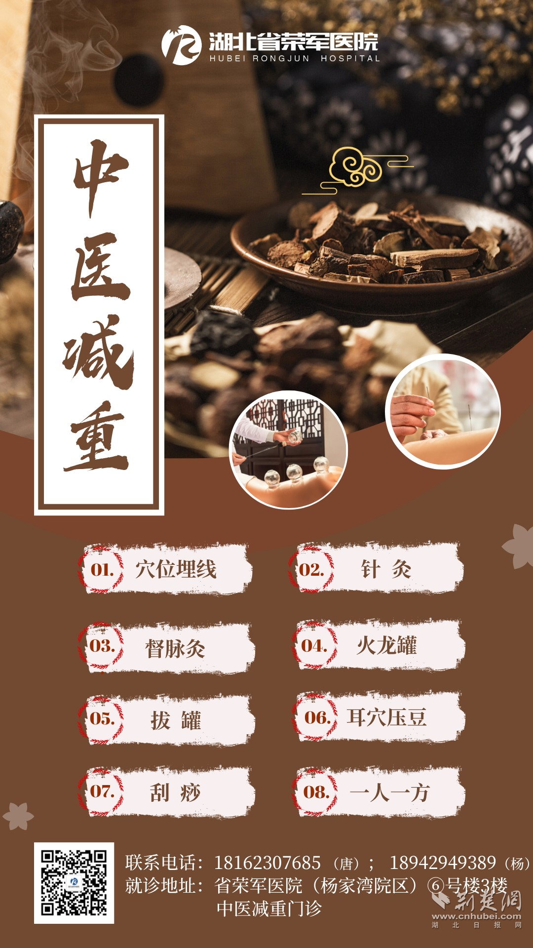 荆楚网(湖北日报网)讯(通讯员袁鸣)又双叒叕胖了?你是否尝试过各种减肥方法,节食饿得头晕眼花、运动累得气喘吁吁,可体重却依旧顽固不降?近日,“国家喊你来减肥”这一话题成为热点,在这个 “体重管理年”,湖北省荣军医院中医减重门诊正式开诊。