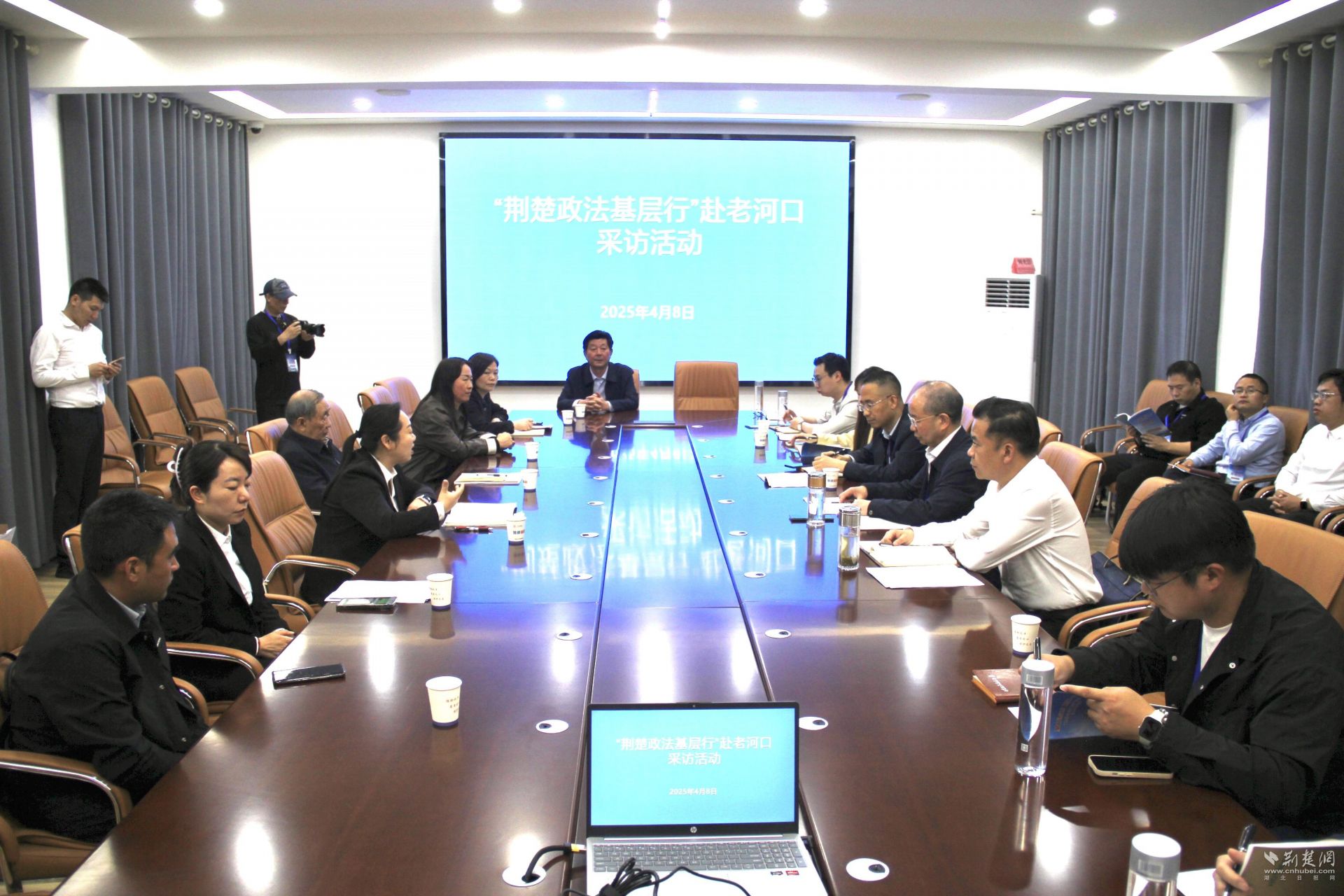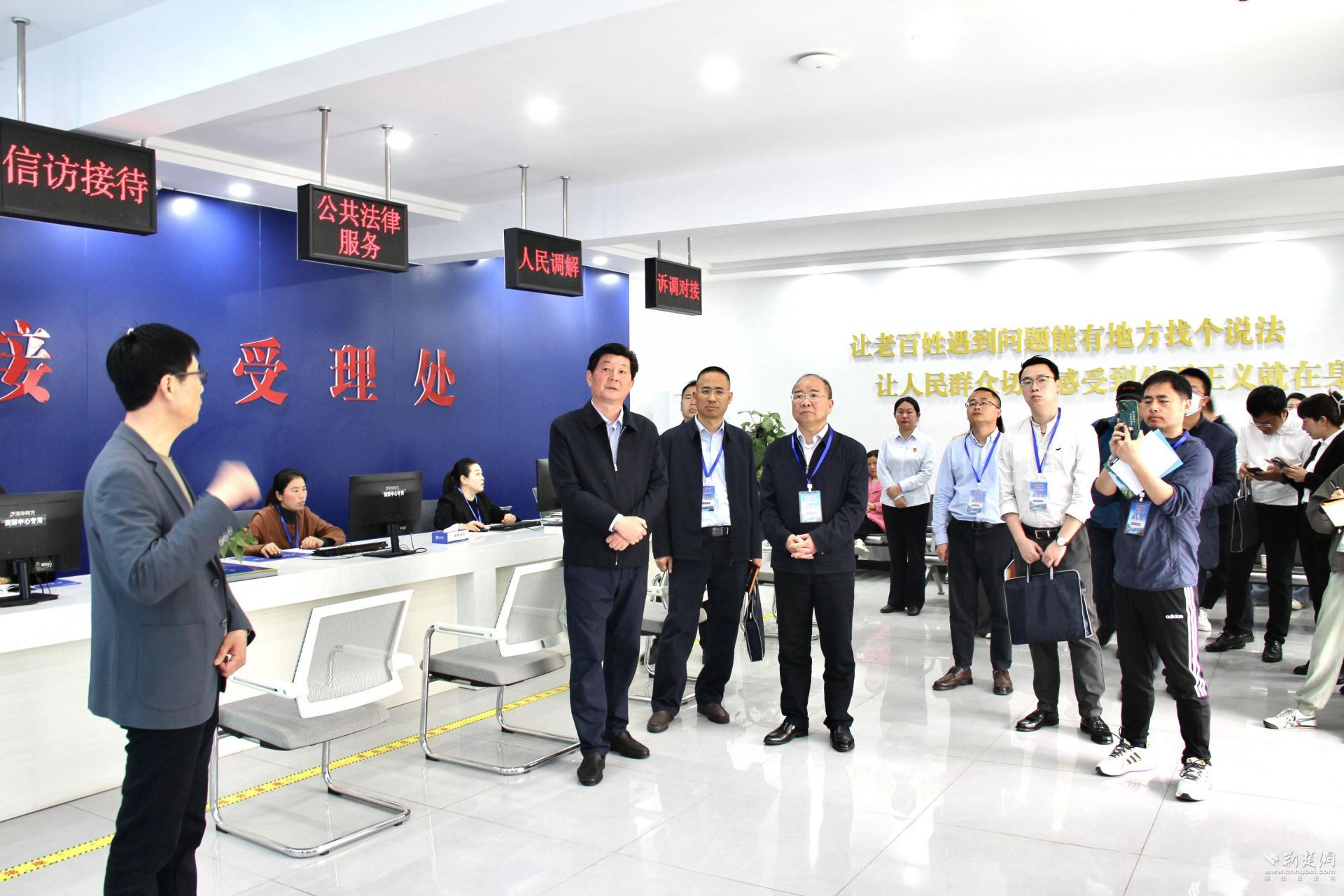 采访团在老河口市综治中心采访。记者 周光洁 摄