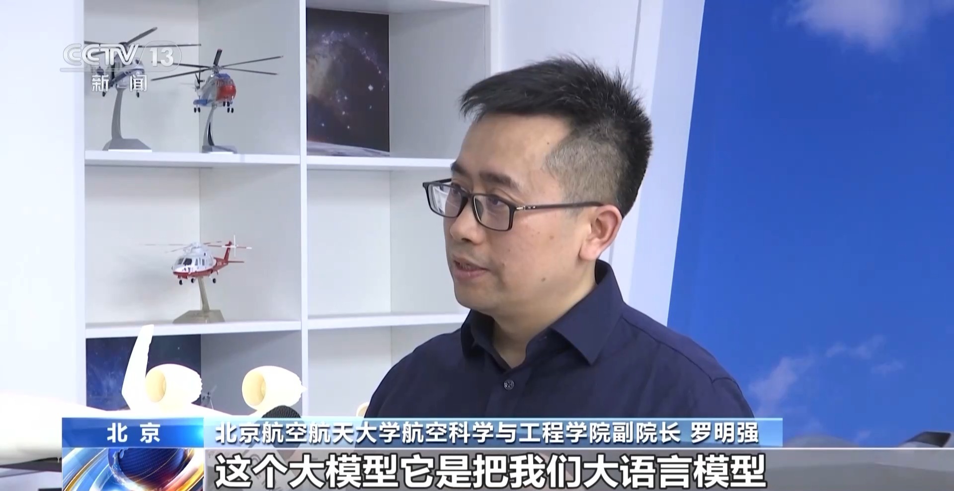 北京航空航天大学航空科学与工程学院副院长 罗明强:这个大模型把我们大语言模型和工业软件进行了结合, 能够完成飞机的概念方案的设计,学生再根据这个方案进一步细化。