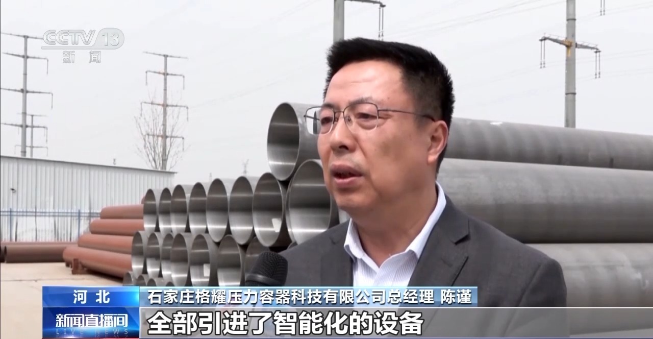 石家庄格耀压力容器科技有限公司总经理 陈谨:在我们的整个线上配套的百分之七八十的设备,全部引进了智能化的设备。