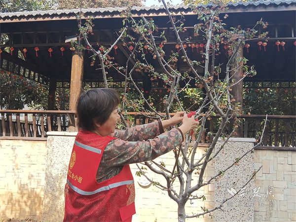 小区工会小组成员正在修剪树枝。 通讯员供图