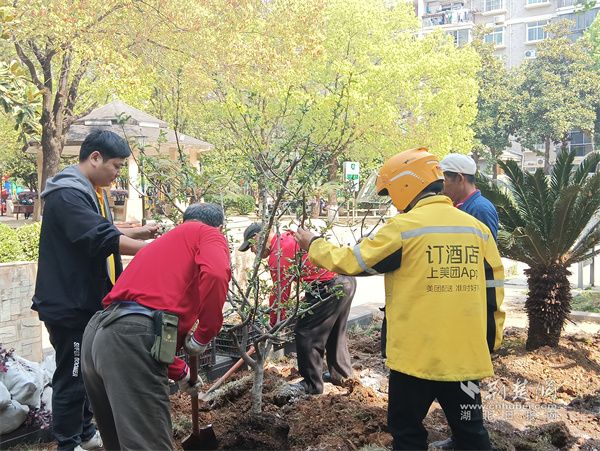 施工当日,现场一片热火朝天的景象。在小区工会小组的号召下,志愿者们满怀热忱,主动承担起搬运物资、挖掘花坑等各项繁重任务。外卖小哥、快递员等新就业群体则利用短暂的午休时间投身到建设队伍中来。“能为自己的小区出份力,再忙也值得。”外卖小哥方雨说。
