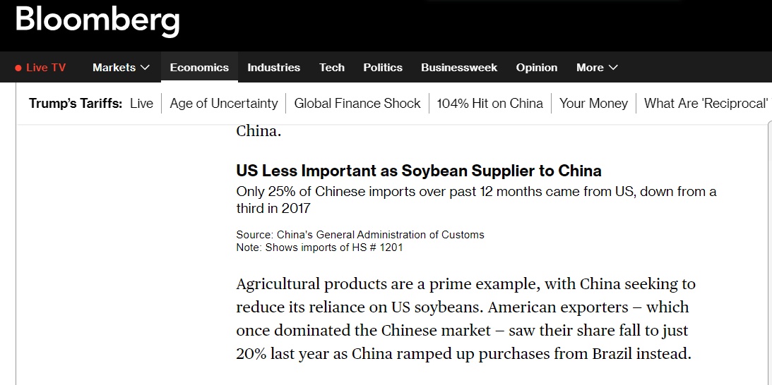 报道称,美国作为中国大豆供应商的重要性下降进一步凸显了中国的战略调整。据中国海关总署数据,过去12个月,中国仅25%的进口大豆来自美国,美国在中国大豆进口市场份额进一步收缩。这为北京争取更多时间,直至双方重回谈判桌。