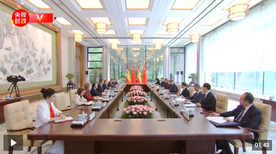 习近平指出,很高兴同桑切斯首相先生会面,欢迎你再次访华。这是你3年内第三次来访,体现了你对深化中西关系的高度重视和坚定意愿,我对此表示赞赏。几次会晤中,我们都一致认为,打造具有战略定力、合作共赢的中西关系符合双方共同和长远利益。