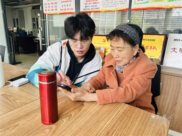志愿者教奶奶编辑相册。 通讯员供图