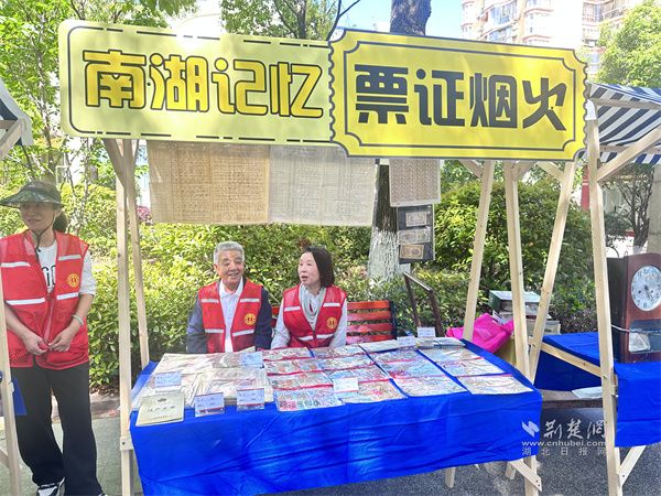 主舞台外,“长廊怀旧集市”人潮熙攘,怀旧、美食、服务、互动、打卡五大体验区精彩纷呈。爱心餐饮单位刘胖子家常菜免费发放热干面,中医义诊、口腔体检、磨刀、配钥匙、爱心义卖等便民服务贴心实用,桂花糕、糖画、冰糖葫芦等美食勾起儿时回忆,剪纸、航模、打卡立牌等特色活动让人沉浸其中,居民现场挥毫书写“南湖记忆”毛笔字即可参与抽奖赢取购物袋等暖心礼品。展区陈列着居民自发捐赠的旧电影票根、俱乐部门票、南湖花园城住户手册、烟标、粮票、书信、搪瓷杯碗等老物件,串联起三十载时光印记,讲述着南湖的“声影流年”。