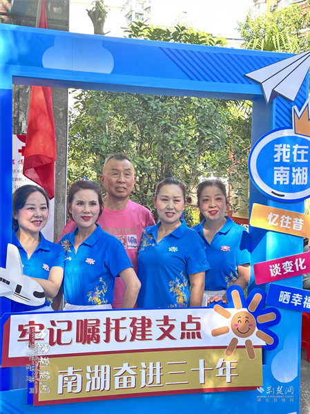 “机场变迁三十年,宁静、温馨、康乐、祥和的南湖花园城,创造出居住小区的多个第一!”活动现场,华锦社区诗歌朗诵《南湖从这里起飞》激情澎湃,紧紧围绕习总书记讲话精神,拉开南湖三十年奋斗篇章。掌声中,百名党员群众共同启动“南湖记忆集锦”,机场旧日志、居民诗文与影像资料交错呈现。7个社区“一社一品”治理成果、“小哥驿站”与新就业群体的“双向奔赴”、老年大学年均百场课程等服务项目,展现出南湖以志愿促发展、以民生强基础、以创新提效能的探索实践,生动勾勒出街道三十年发展脉络与温度。