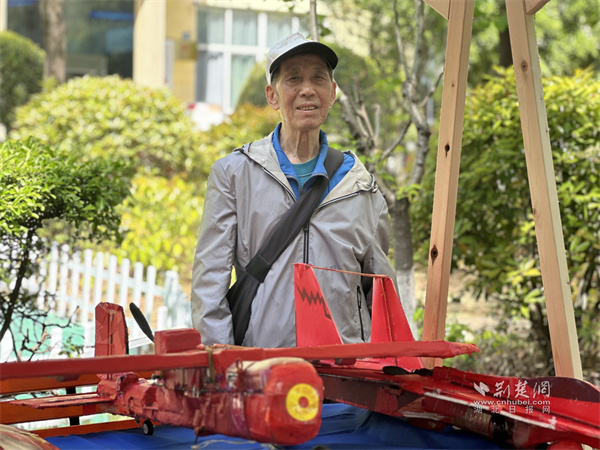 徐天飞老人自制飞机模型。 记者 李燕摄