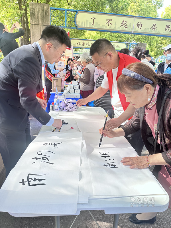 居民书写“南湖记忆”毛笔字。 记者 李燕摄