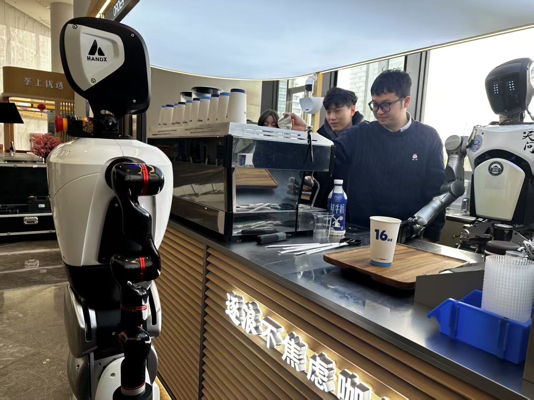 光谷街头的咖啡店里,“天问”系着围裙,熟练地为顾客送上咖啡;