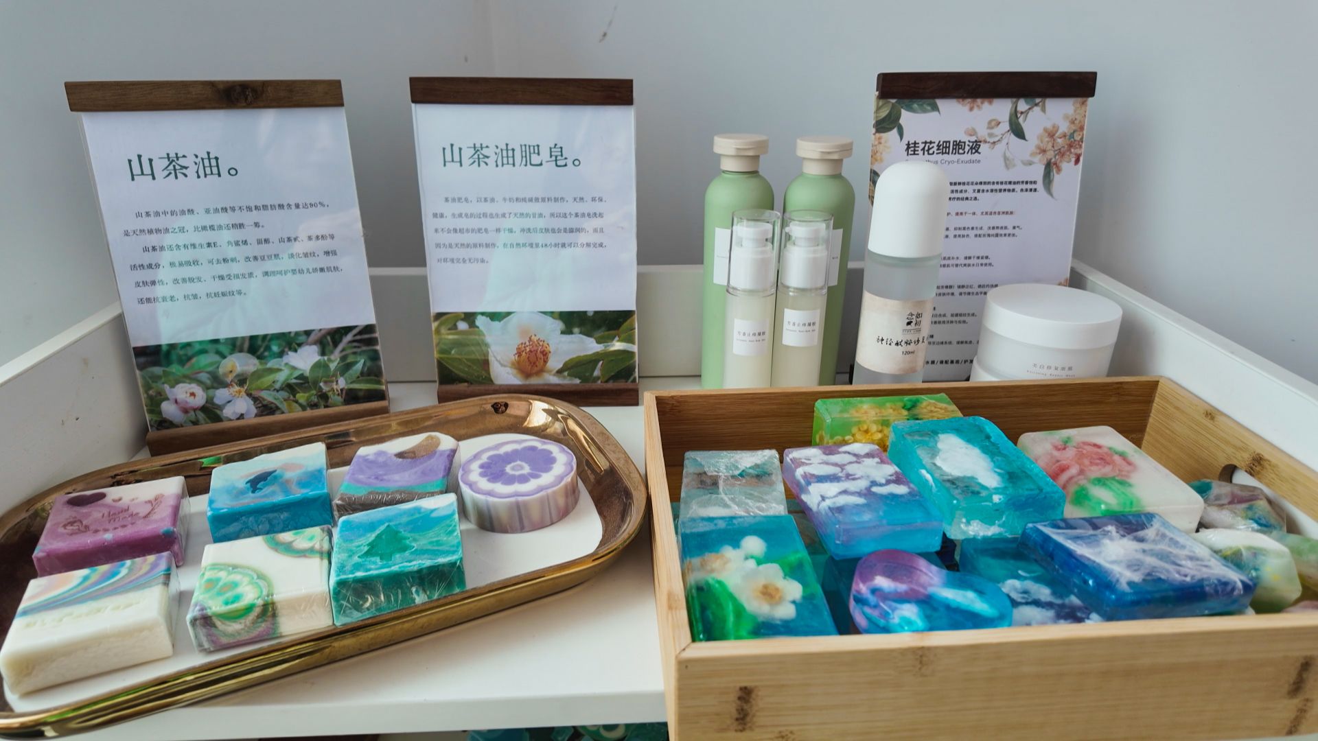 近日,记者走进位于后溪村党群服务中心旁的后溪手工馆,法式田园风的装修风格让人眼前一亮——原木色的展示架上,摆放着造型精致的手工皂和护肤品,空气中弥漫着淡淡的桂花香,几位村民正围坐在一起,专注地调制着手中的天然原料。