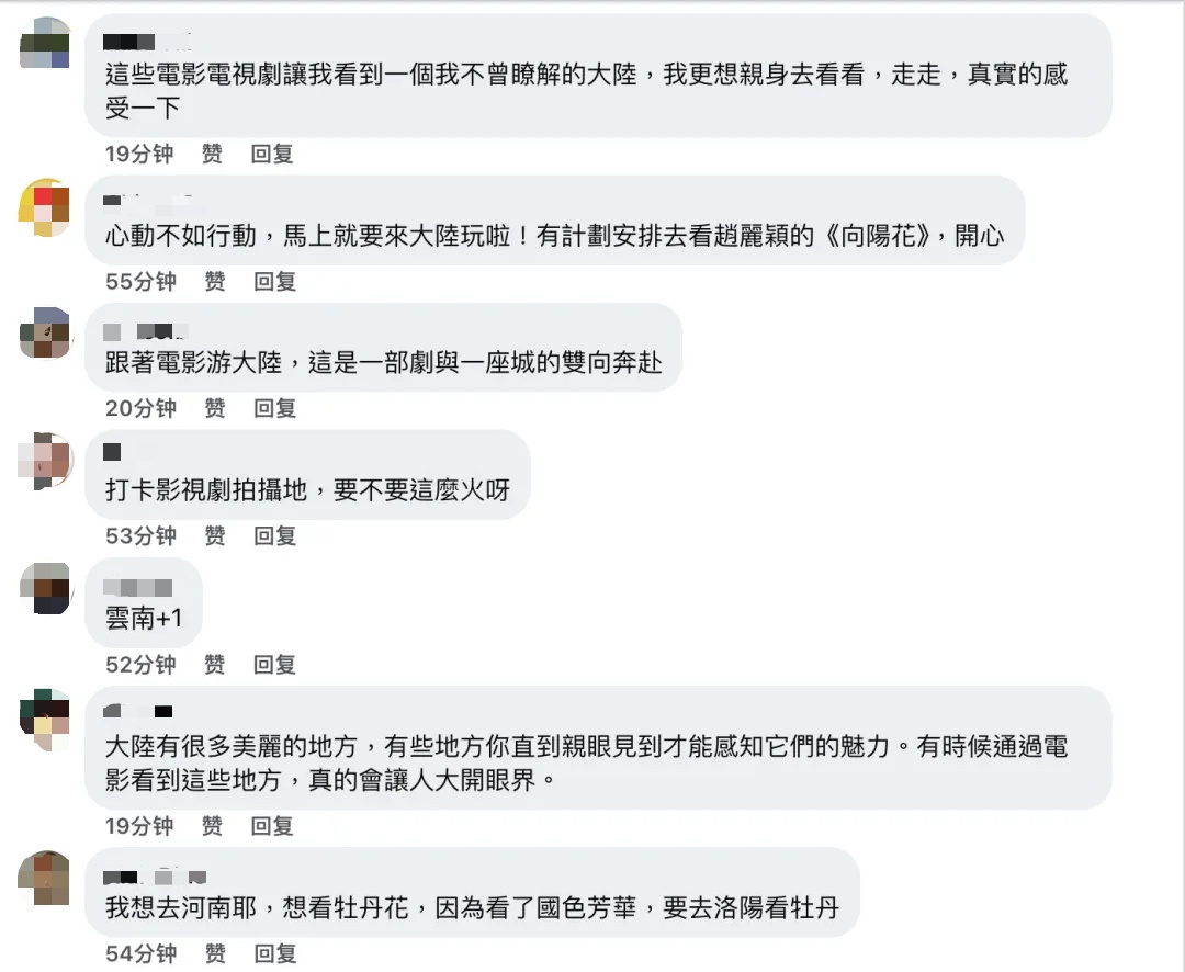 还有台湾网友在领略大陆美景之后,在“看台海”境外平台留言表示,“大陆有很多美丽的地方,有些地方你直到亲眼见到才能感知它们的魅力。有时候通过电影看到这些地方,真的会让人大开眼界。”